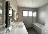 Bien distinct de la partie jour, il se compose de trois chambres (16,34 m², 10,46 m² et 9,05 m²), accompagnées d’une salle de bains (avec WC), d’une salle d’eau et d’un WC indépendant. Les volumes permettent d'imaginer aisément la création d'une suite parentale tout confort.